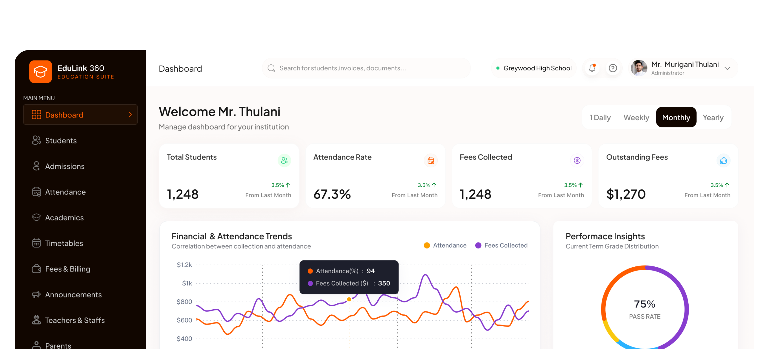With Edulink, you can track student fees and payments, spot financial trends early, and make informed decisions without digging through spreadsheets.